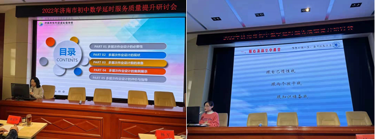 为推进“双减”政策有效落地,济南市教育教学研究院初中数学学科高度重视,统筹安排,多措并举,于1月5日在甸柳一中开展了主题为“落实双减,教研在行动”系列活动,通过教师现场展示,分享交流有效、创新做法,引导教师们相互学习、共同发展,同时挖掘、培育、宣传在减轻作业负担方面的典型榜样。市数学教研员杨军主任、市教研员马明、市中区教研室陈玉华主任、区教研室赵鹏、在市教研院挂职研修的魏延松老师,以及来自市直学学校及各区县的近50名骨干教师参加了活动。 市教研员杨军主任首先肯定了各学校基于“双减”政策下的作业设计,提出教师更应该注重课堂教学效率,在作业的布置与指导方面进行再深入研究。之后,张亦弛、刘伟奇、张永坤三位老师展示了作业设计;面临寒假,李玲玲、杨钰辰两位老师展示了空中课题录课技术和课件要求,为老师们寒假中录课提供了指导方法,解决了录课中存在的疑惑。 在“双减”背景下,如何提高课堂教学效率,如何从作业角度减量提质,是摆在教育者面前的两个课题。通过此次系列活动,老师们更加明晰了新形势下,如何从作业设计、复习课效率、结合寒假微课去指导学生的学习。优秀老师的展示也为全体数学教师提供了学习交流成长的契机,大家共享数学盛宴,受益匪浅。(初中数学)