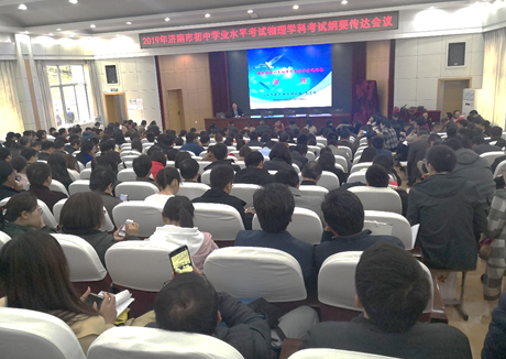 为帮助广大初中物理教师更好地了解2019年济南市初中学业水平考试物理学科的要求,进一步做好九年级学考前的复习教学工作, 2019年初中学业水平考试纲要物理学科传达会于2019年4月11日下午在济南泉城中学报告厅召开,济南市各区县物理教研员、各学校初中物理教研组长及九年级全体物理教师共计360余人参加了本次会议。