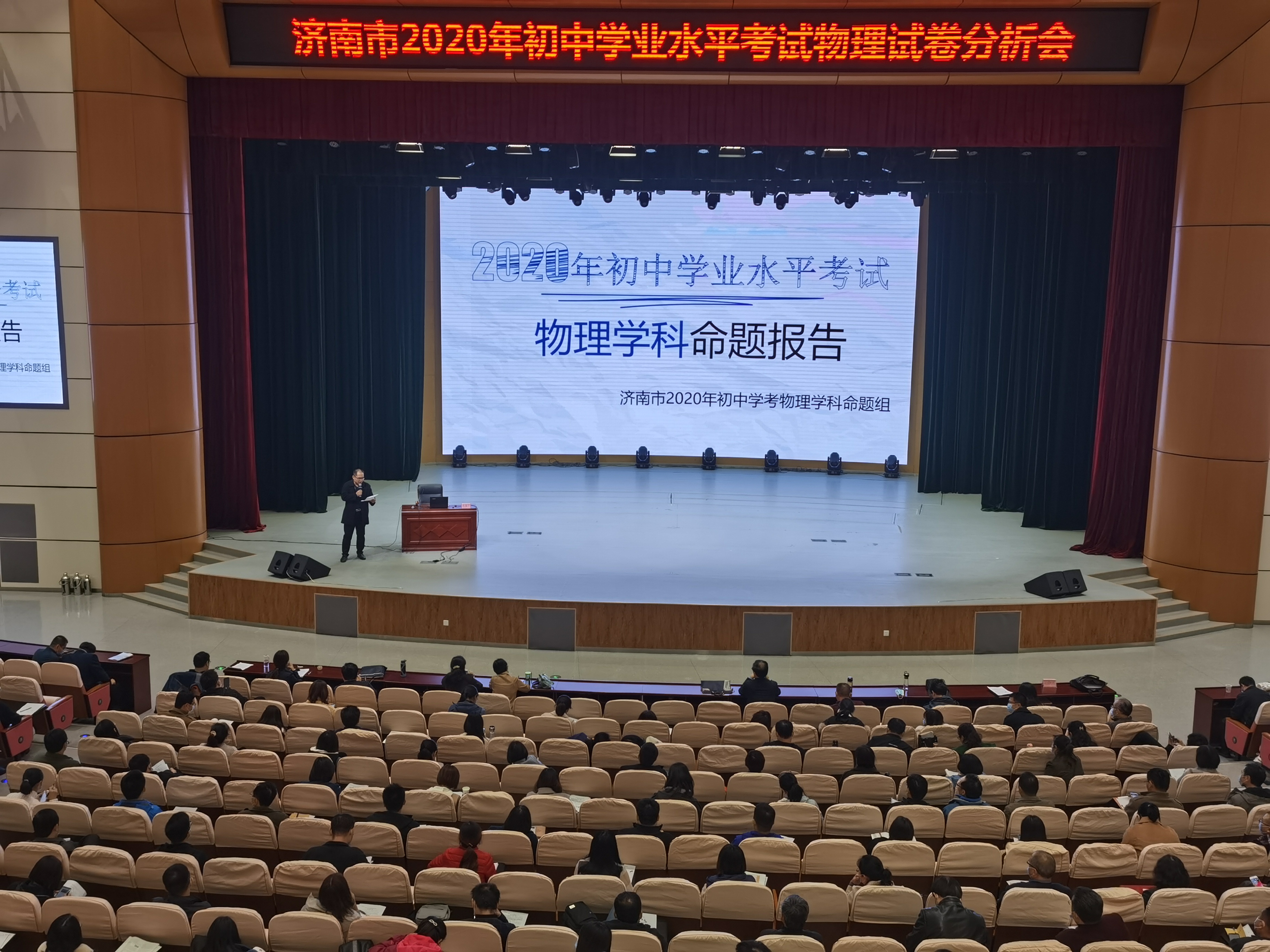 为了帮助广大初中物理教师更好地总结2020年初中学业水平考试物理学科的工作,充分发挥学业水平考试对初中物理教学的正确导向作用,济南市2020年初中学业水平考试物理试题分析会于2020年10月29日下午在济南稼轩学校艺术馆报告厅召开。本次会议由历城区初中物理教研员张金勇老师主持,济南市各区县初中物理教研员、部分初中学校分管物理教学的领导、各初中学校物理教研组长及九年级全体物理教师参加了会议。