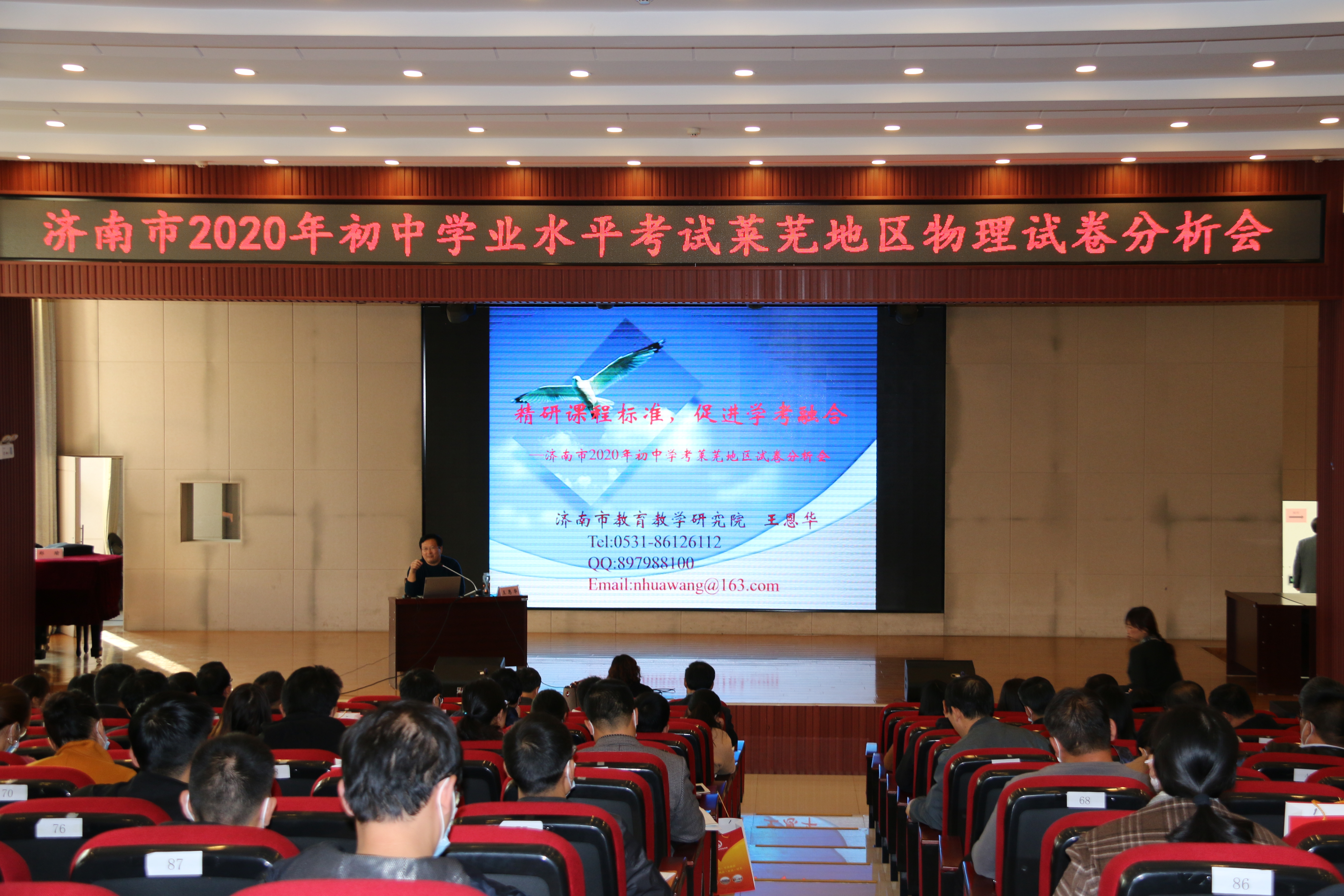 为帮助莱芜区、钢城区和莱芜高新区的广大初中物理教师更好地总结2020年初中学业水平考试物理学科的工作,充分发挥学业水平考试对初中物理教学的正确导向作用,更好地促进济莱学考融合,济南市2020年初中学业水平考试莱芜地区物理试卷分析会于2020年11月3日在钢城区实验学校胜利召开。会议由莱芜区物理教研员毕思华主任主持,莱芜区、钢城区和莱芜高新区的初中物理教研员、初中学校物理教研组长及九年级全体物理教师参加了本次会议。
